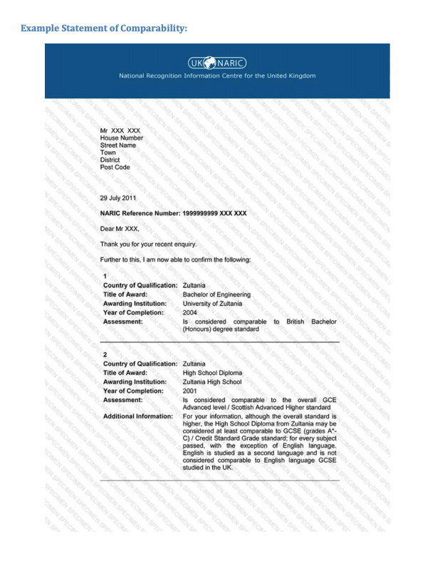 This is usually a preference if you are making a UK spouse or partner visa application at ayaw mo ng mag-exam ng English language like IELTS or SELT. If this is the case, you have to contact the UK NARIC and find an equivalent of your degree to the UK education standard or iyong tinatawag na Statement of Comparability. See below example: